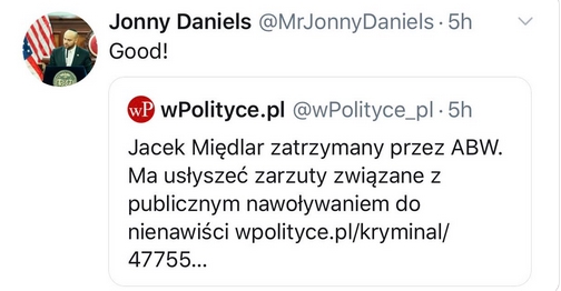 Z aresztowania Polaka ucieszył się także Żyd Daniels znany z wyzywania polskiej elity od idiotów i imbecyli